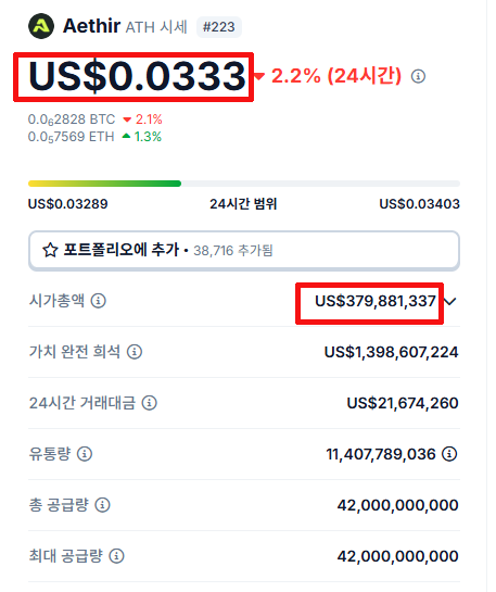 에이셔 [Aethir,ATH] 코인 가격 전망 및 시세 분석
